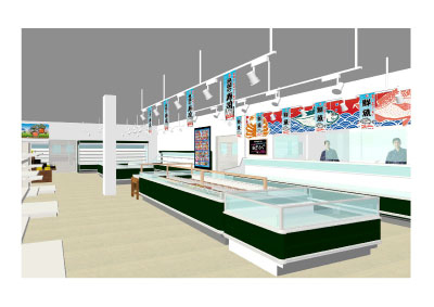 CGパースで、お客様の様々な視点から最も効果的なディスプレイを検討します。