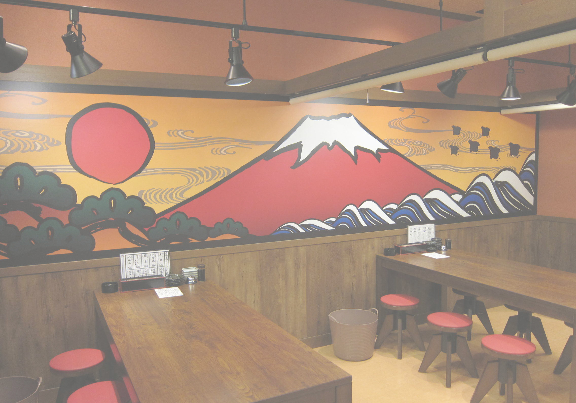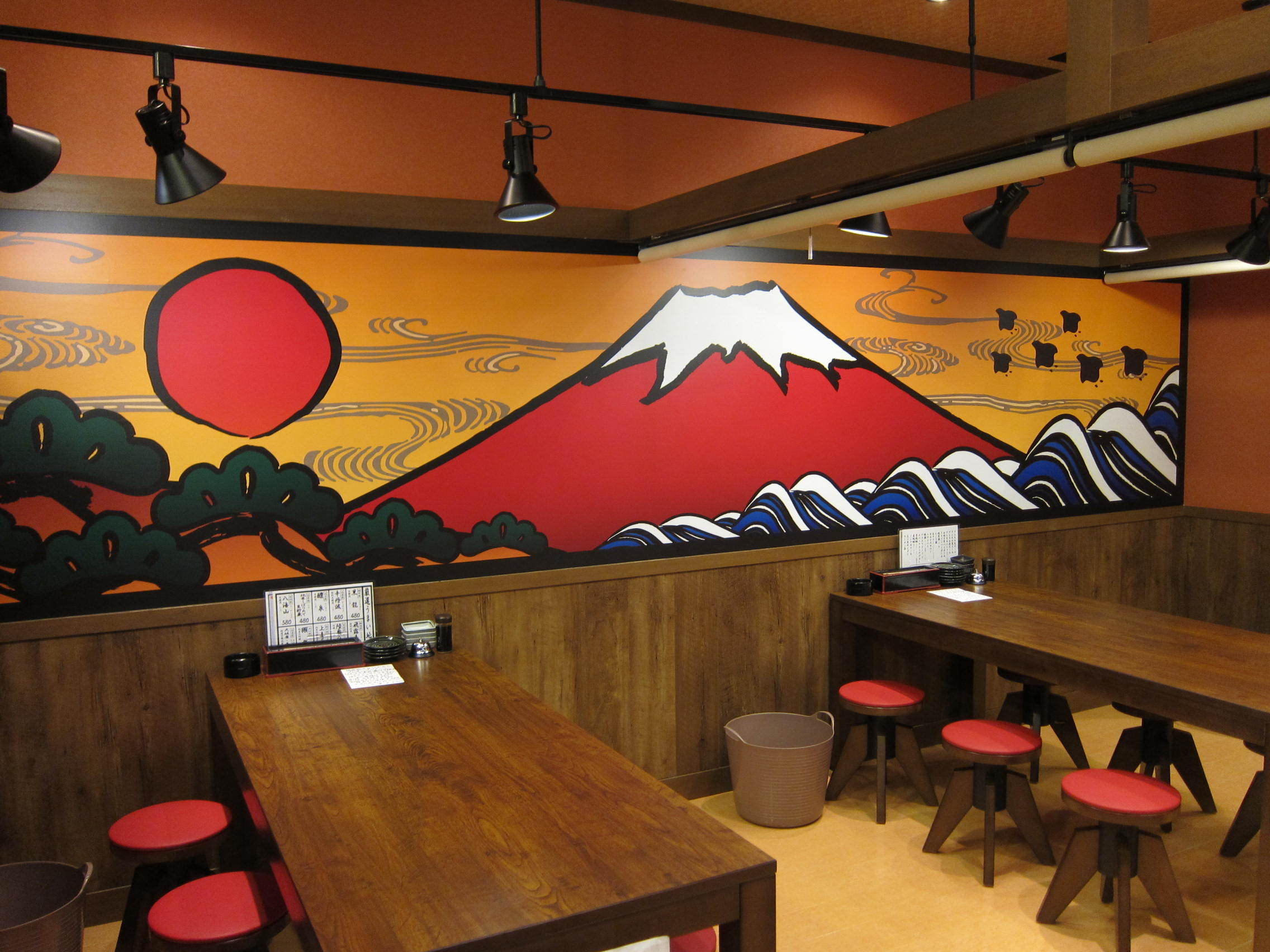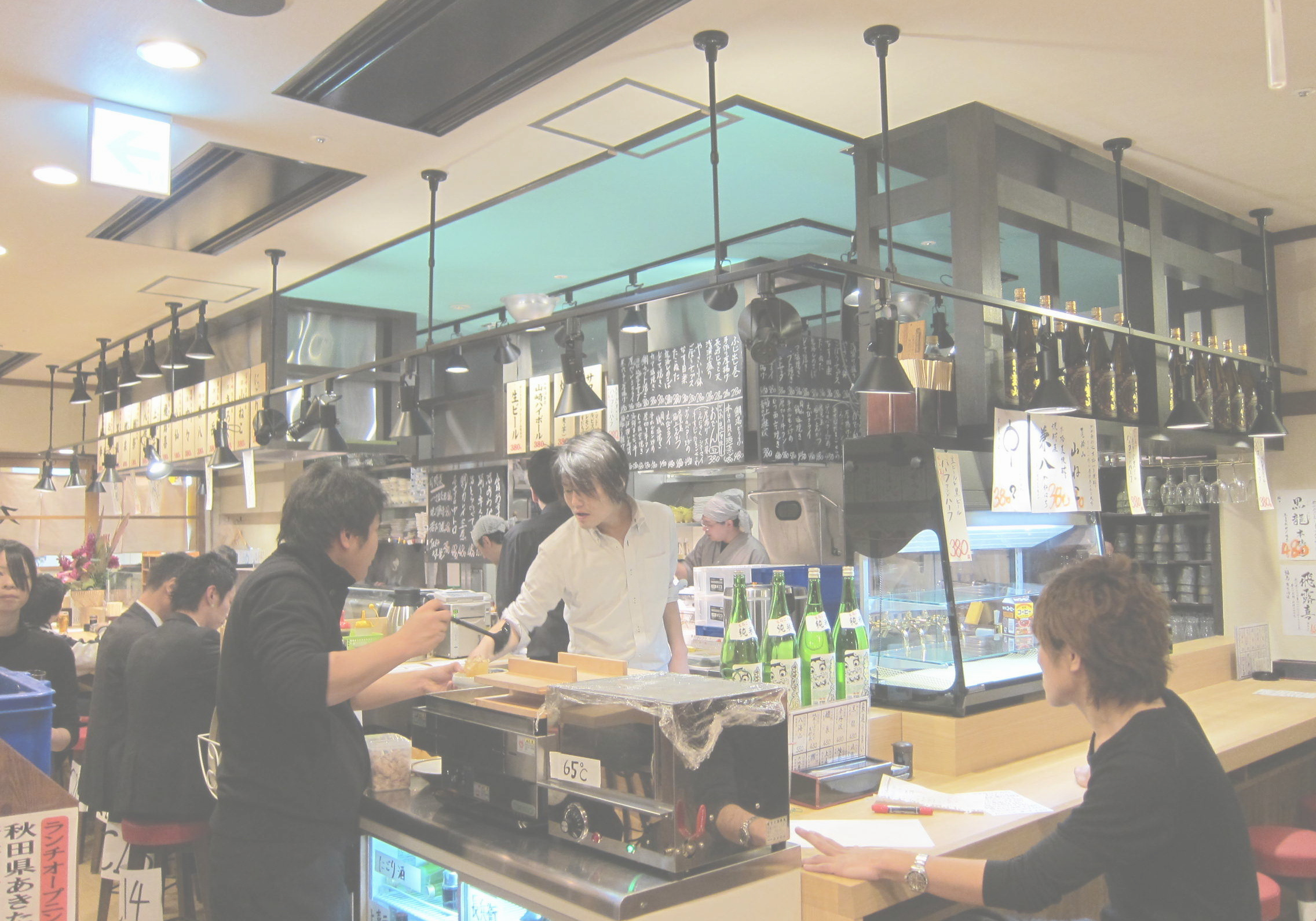 ・レイアウトは、営業時間による客数の変化に対応するため、入口にカウンター席、奥にテーブル席を配置しています。