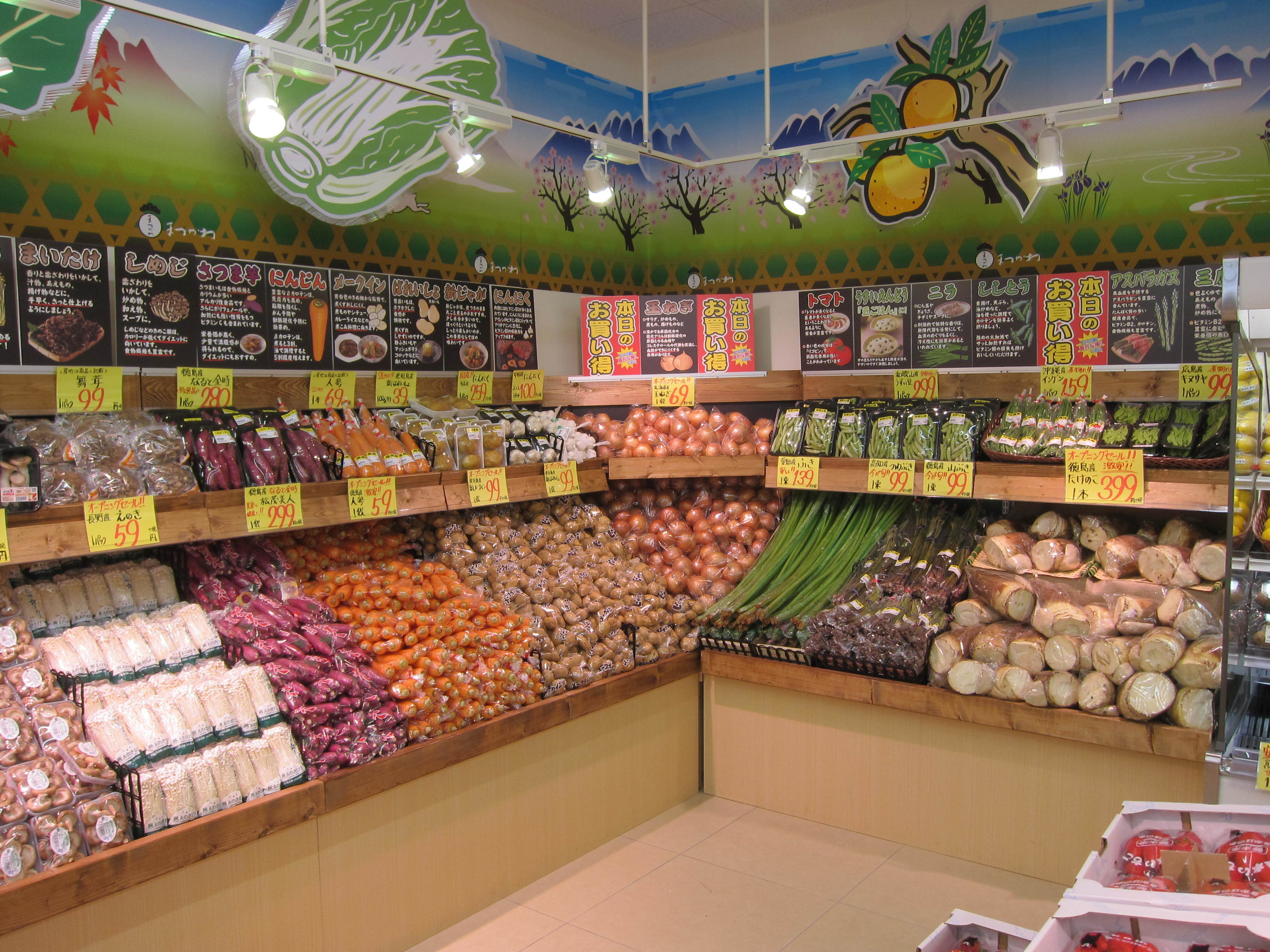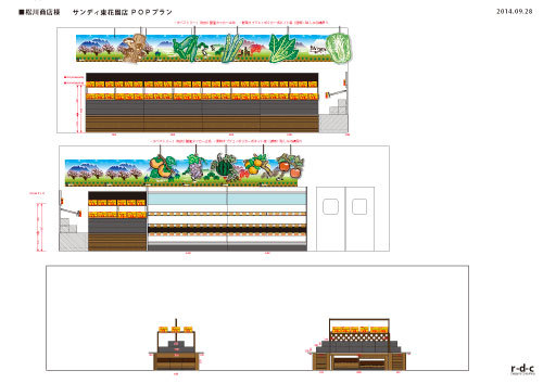 HOME > WORKS DETAIL > 松川商店サンディ東花園店 青果売場 OPEN 2016年4月什器製作 リテイルデザインコンサルティングディスプレイ・POP制作 リテイルデザインコンサルティング 展開図(ディスプレイ) 木製什器図面(壁面) 木製什器図面(平台) 青果売場 店内青果コーナー 木製什器製作・POP制作 青果売場 店内青果コーナー 木製什器製作・POP制作 青果売場 店内青果コーナー 木製什器製作・POP制作 青果売場 店内青果コーナー 木製什器製作・POP制作 トップページへ